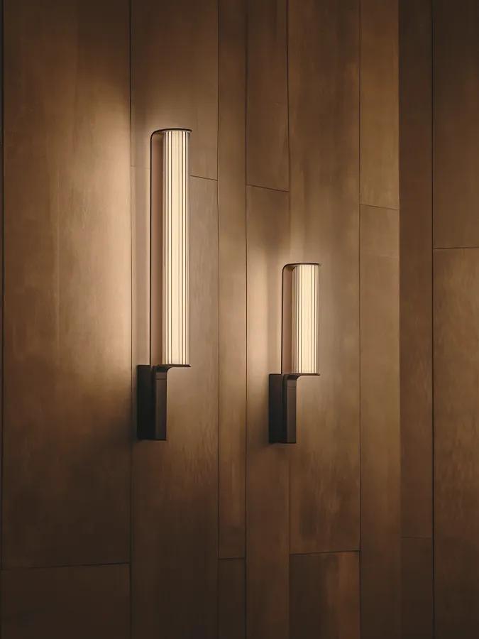 Sleek and timeless, the refined silhouette of Class wall luminaire smoothly collides with a striking study in materiality, while radiating with an inviting, warm glow.