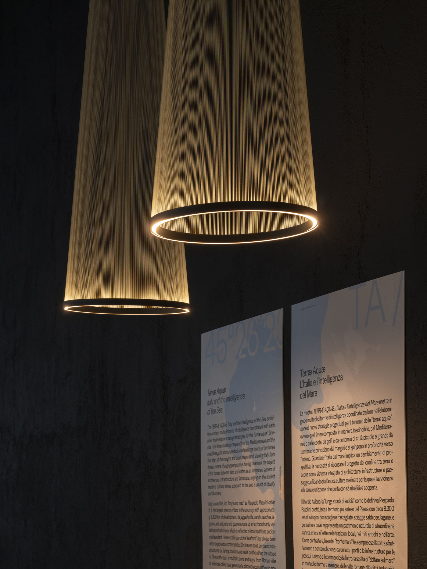 Among the 66 national pavilions, our luminaires feature in the Italian Pavilion, entitled “Terrae Aquae. Italy and the Intelligence of the Sea.” Curated by architect and academic Guendalina Salimei, the exhibition offers architectural, scientific and cultural reflections through drawings, videos, artistic interventions and interactive experiences that speak of Italy’s past, present and future—viewed from the sea.