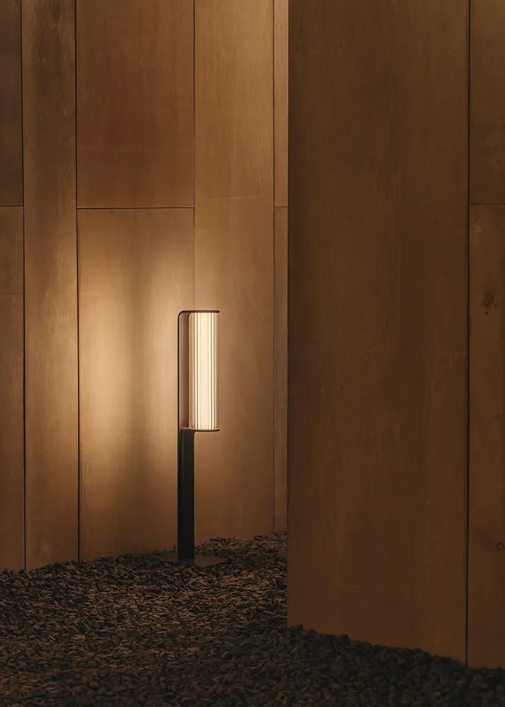 La luminaria de pie Class combina el diseño refinado de una lámpara de pie con el rendimiento funcional de una baliza. El difusor de vidrio translúcido se caracteriza por unas ranuras uniformes que permiten que la luz pase suavemente a través de él, produciendo una luz difusa y agradable para entornos de transición.