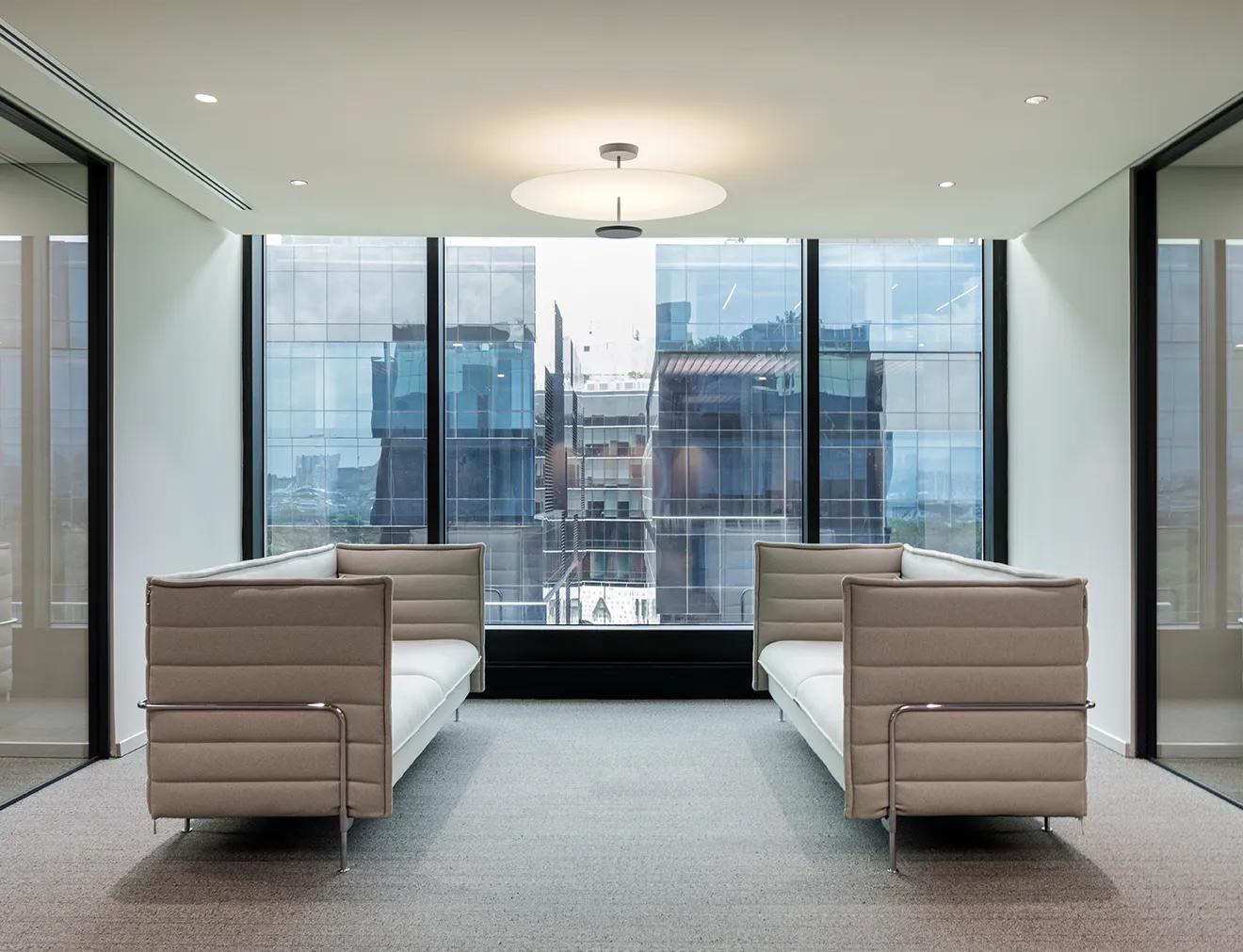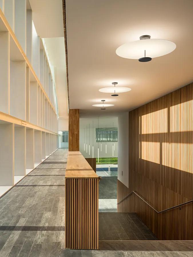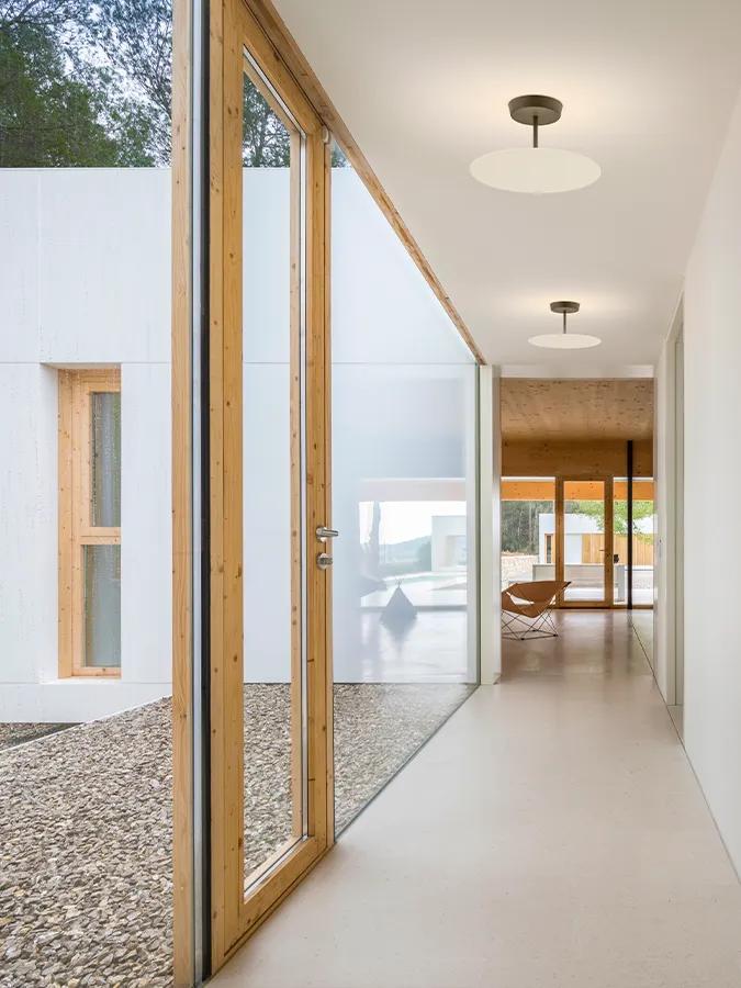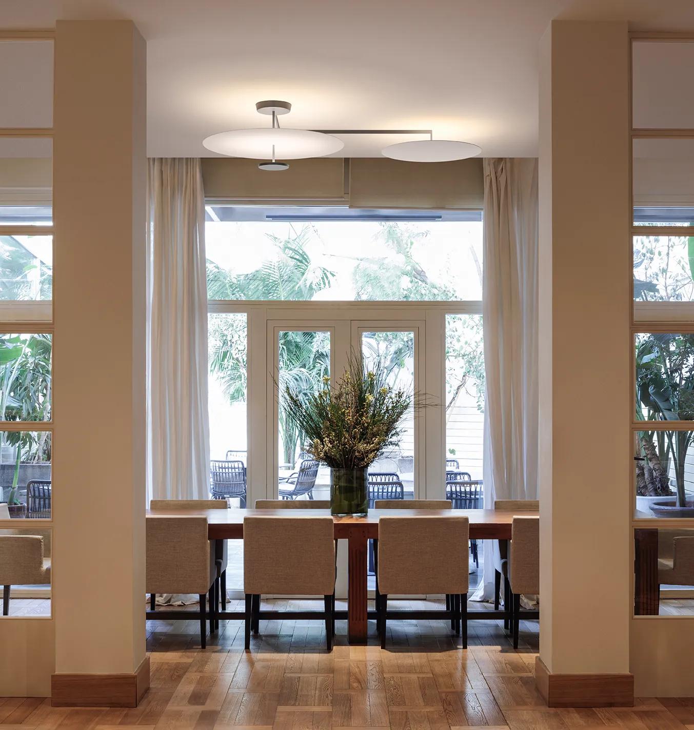 The Flat ceiling lamp is a study in geometry marked by layers of light that integrate with the surrounding architecture, infusing a space with a soothing sensibility.